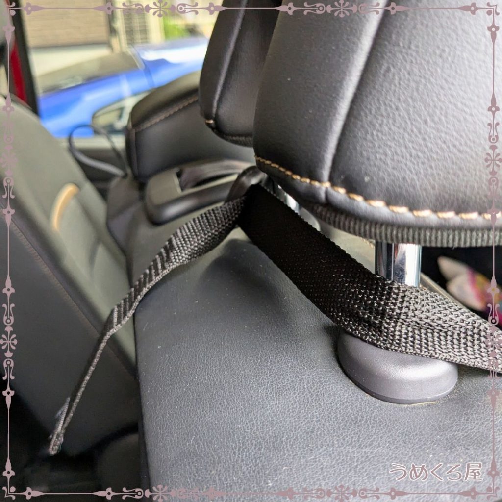 上の方は座席のヘッドレストに簡単に取り付けられます。