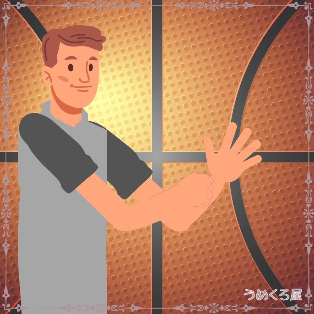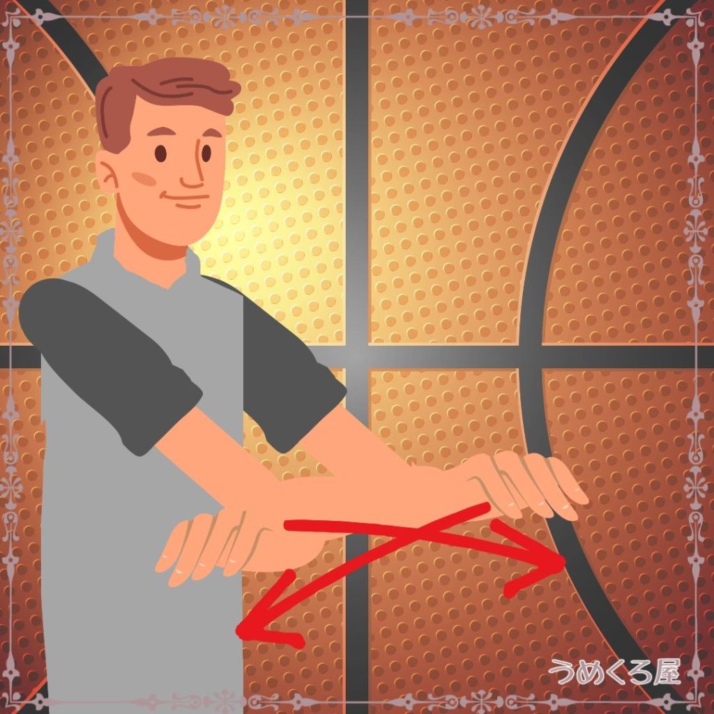 手首を逆の手で掴みます。