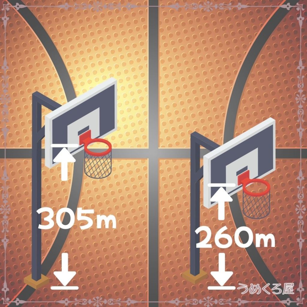 バスケでは305mですが、ミニバスでは260mと少し低めに設定されています。