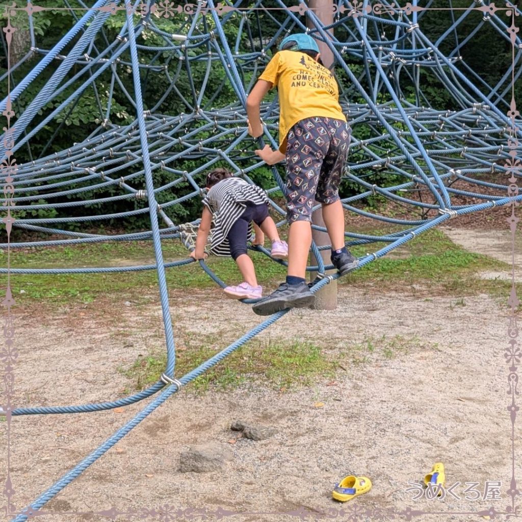 大型遊具やローラー滑り台、ネットツリーがありました。