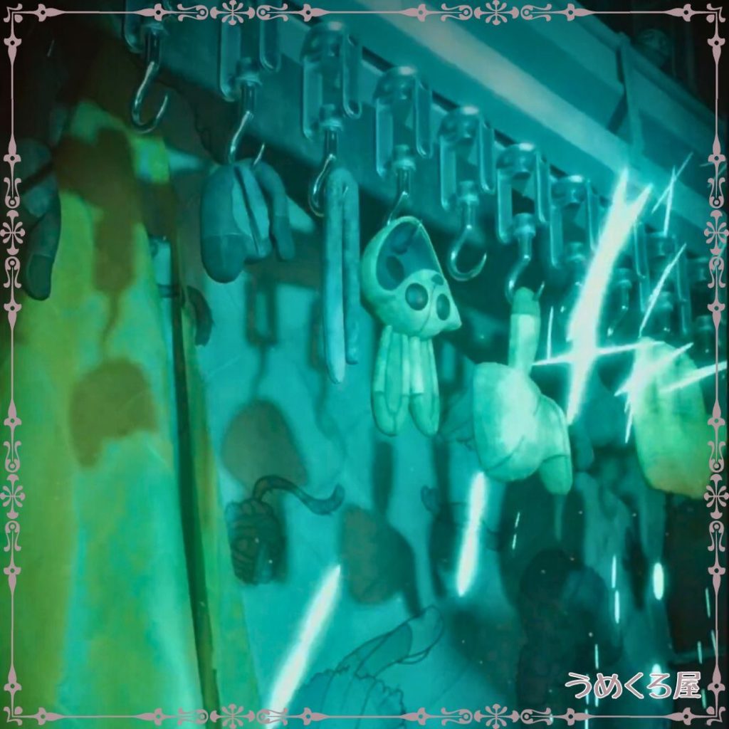 そこには食肉加工所にあるようなフックに、おそらくキャットナップの手、尻尾、そして新しくきれいなホッピーの頭の前と後ろ、謎の部品、ハギーワギーかキシーミシーの手が吊るされています。