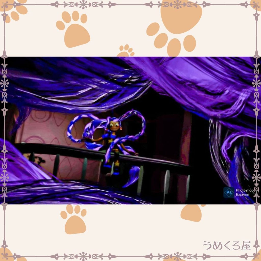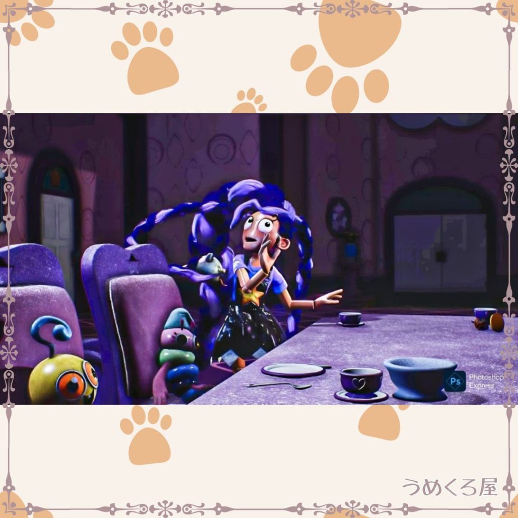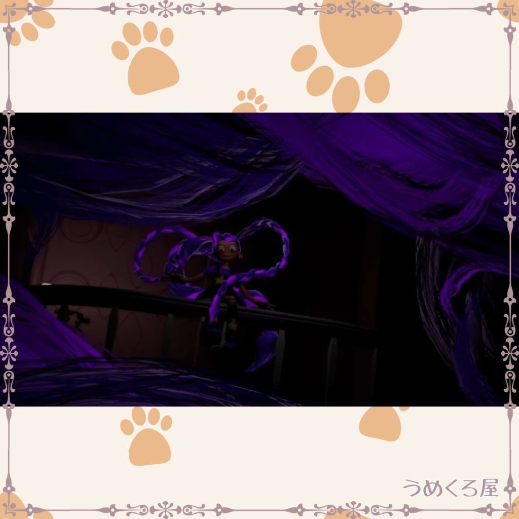 髪でキャンディキャットを操りながらおしゃべりしたり、おままごとをしたりしているようです。