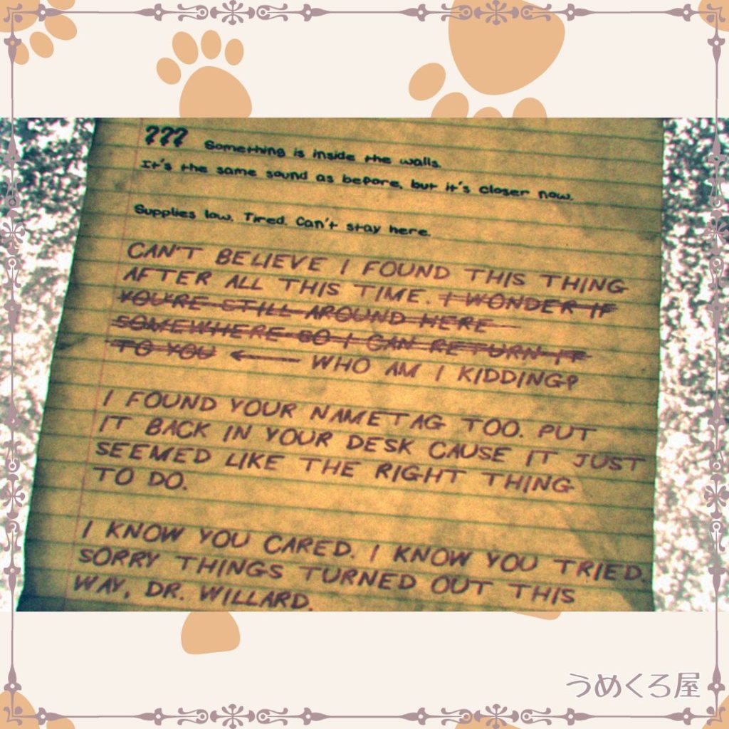 - 最後の書体の違うメモは、プレストン・ウィラードが書いたもの。