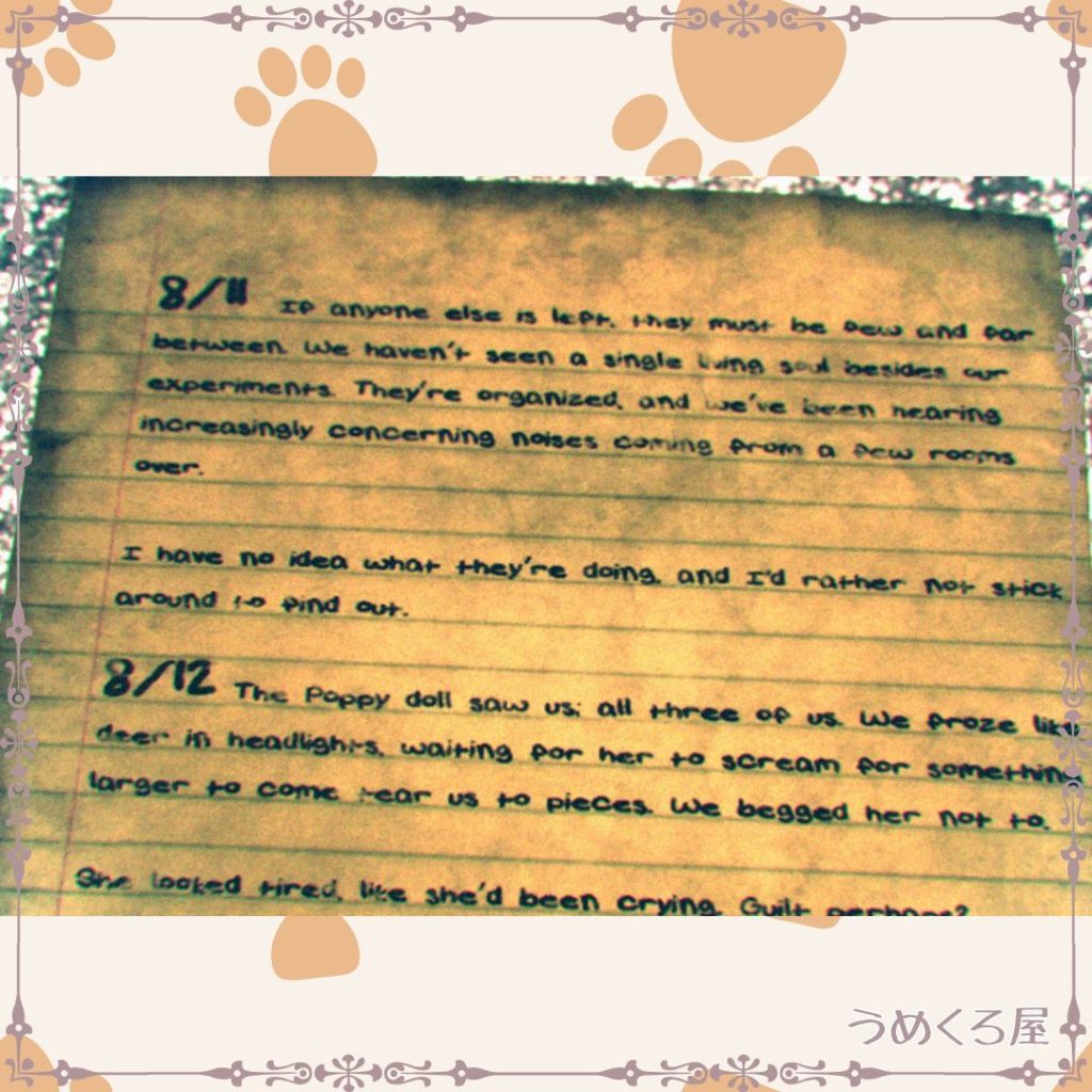 - プロトタイプor『あいつ』の姿を恐らく物陰から確認したが、それをプロトタイプだと認識していなかったため、日記を書いた人物はプロトタイプと直接会ったことがない人物。